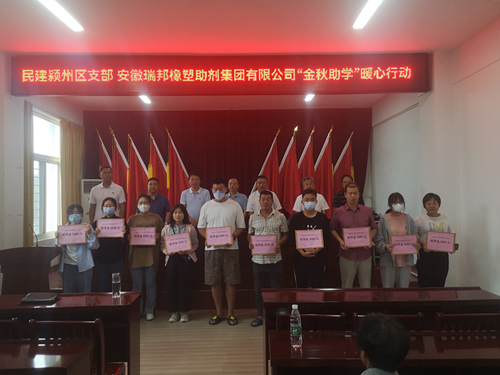 2022年8月27日上午,安徽瑞邦橡塑助劑集團(tuán)有限公司一行十余人,在民建潁州區(qū)支部主委韓亮的帶領(lǐng)下,前往潁州區(qū)三十里鋪鎮(zhèn)開(kāi)展“金秋助學(xué)”暖心行動(dòng),向10名新入學(xué)的貧困大學(xué)生,每人捐助2000元。民建阜陽(yáng)市委會(huì)委員、市直二支部主委王成杰,潁州區(qū)政協(xié)副主席、民建潁州區(qū)支部副主委卞凱,潁州區(qū)三十里鋪鎮(zhèn)鎮(zhèn)長(zhǎng)李立峰,以及受資助學(xué)生、家長(zhǎng)代表等參加活動(dòng)。